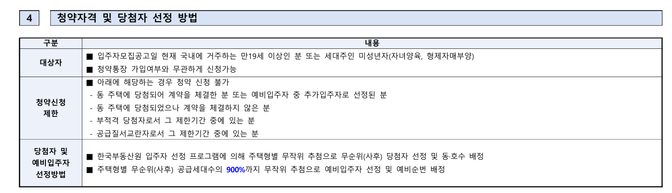 - 예비입주자 선정비율 : 공급세대수의 900%
